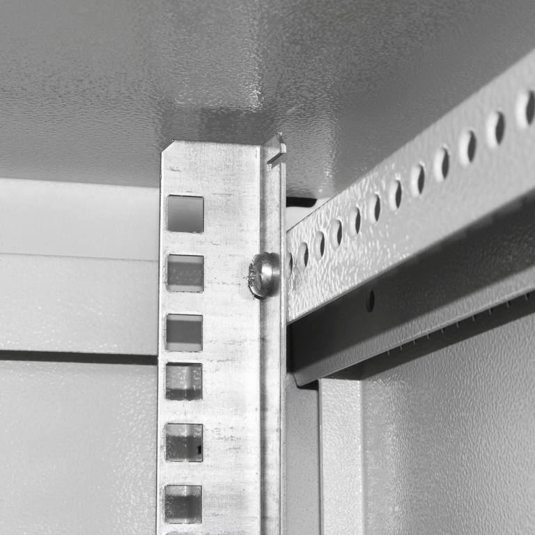 Стойки внутри шкафа позволяют регулировать оборудование по глубине.