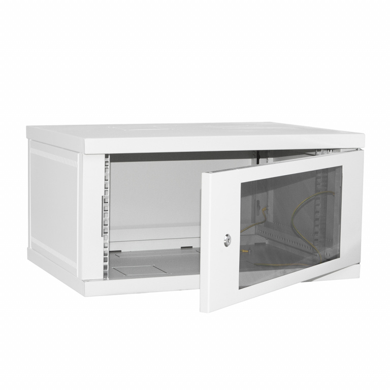 Высота шкафа составляет 6U, ширина и глубина 600 мм.