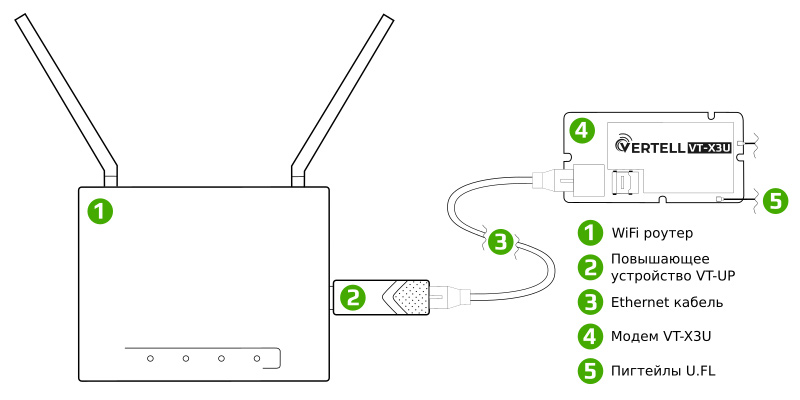 Повышающий USB адаптер Vertell VT-UP предназначен для работы с встраиваемым модемом Vertell VT-X3U. Адаптер подключается в роутер через USB разъем. Соединение с модемом Vertell VT-X3U с помощью патч-корда из медной витой пары.