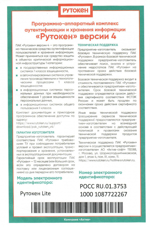 Ру Токен лайт с сертификатом соответствия, №3753. Все носители новые.