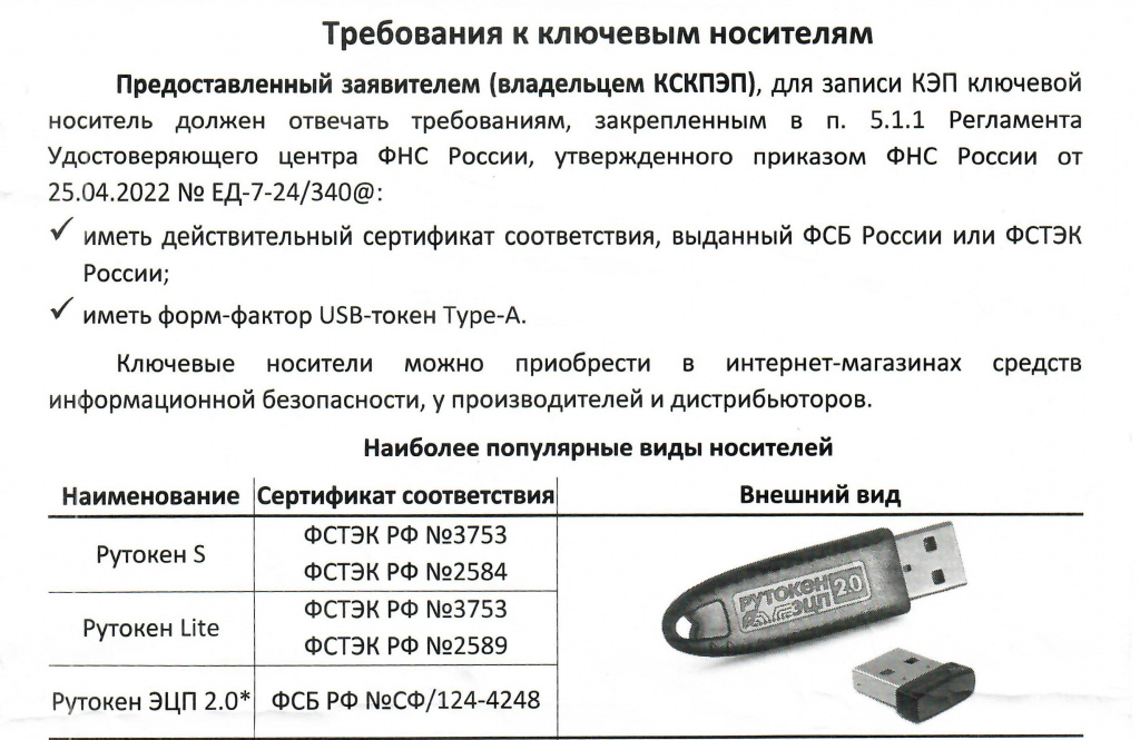 На фотографии скан подходящих для записи ЭЦП из налоговой Санкт-Петербурга (В т.ч для КЭП руководителя)