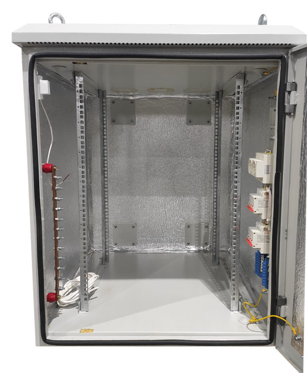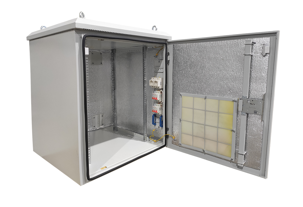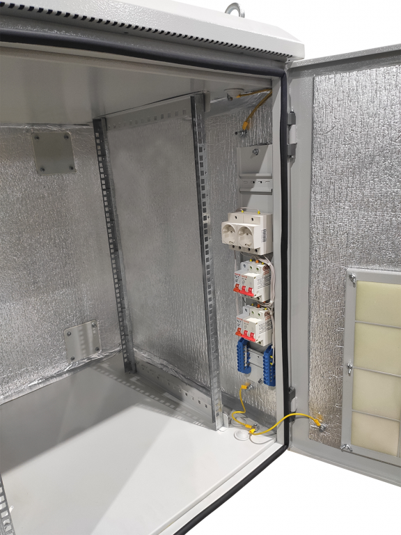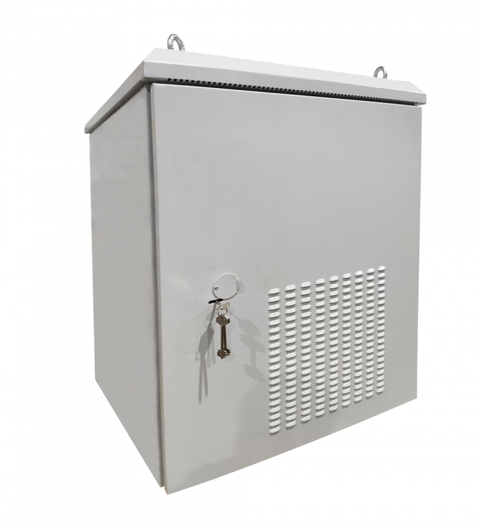 Климатический навесной шкаф данной серии применяется для установки оборудования в формате 19" и обеспечения его работы в экстремальных условиях. Модель имеет цельносварную конструкцию корпуса, а также сменные двери. Оптимальные для работы электронных компонентов температурные условия автоматически поддерживаются посредством обдува вентилятором, нагревательного элемента и термостата. В качестве утеплителя между двойными стенками шкафа используется минеральная вата. Кабеля вводятся при при помощи герметичных вводов, расположенных внизу шкафа. Для защиты от краж и неконтролируемого доступа в корпус встроен сувальдный замок с трехточечным запиранием. Максимально допустимая статическая нагрузка составляет 100 кг.