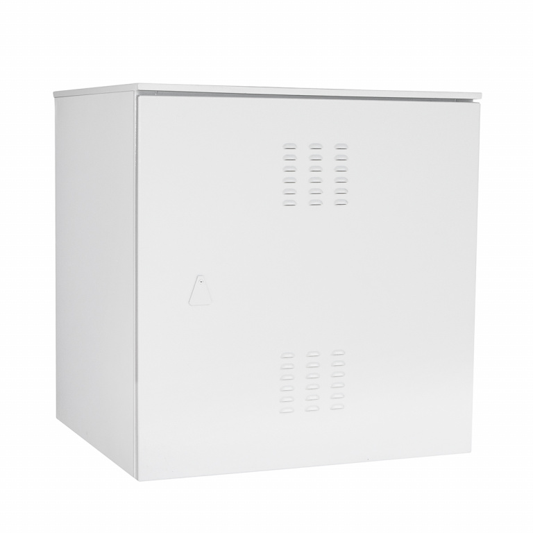 Навесной климатический шкаф для установки 19-дюймового оборудования вне помещений. Максимальная статическая нагрузка на шкаф составляет 100 кг. Базовая комплектация включает электрораспределительную панель с набором термостатов, общий рубильник, дополнительную розетку, датчик открытия двери, автоматы включения/выключения. Ввод кабелей осуществляется в нижней части шкафа, выводы герметичны. Необходимая температура внутри бокса регулируется блоком вентиляторов. Стенки шкафа утеплены дополнительно минеральной ватой. Сувальдный замок для защиты от кражи.