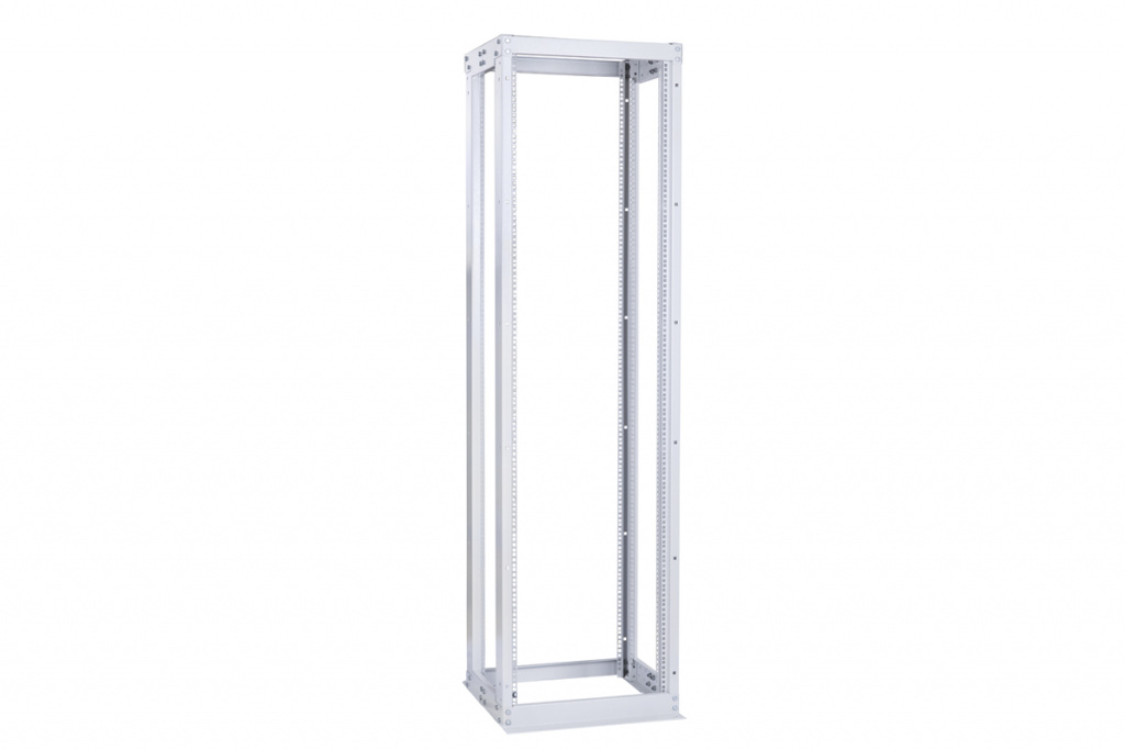 Имеет полностью разборную двухрамную конструкцию. Для удобства монтажа и коммутации оборудования предусмотрена перфорация по всей длине рамы, широкий спектр аксессуаров. Возможна регулировка полезной глубины – 600-1000мм. Устанавливается на регулируемые винтовые опоры (ножки), компенсирующие неровности пола, или ролики. Высота стойки 24U.