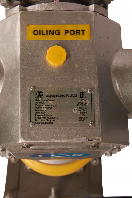 Вибротрамбовка электрическая TOR HCD80 с номинальной мощностью 2,2 кВт обладает силой удара 9кН. Отлично подходит для трамбовки любых сыпучих грунтов.