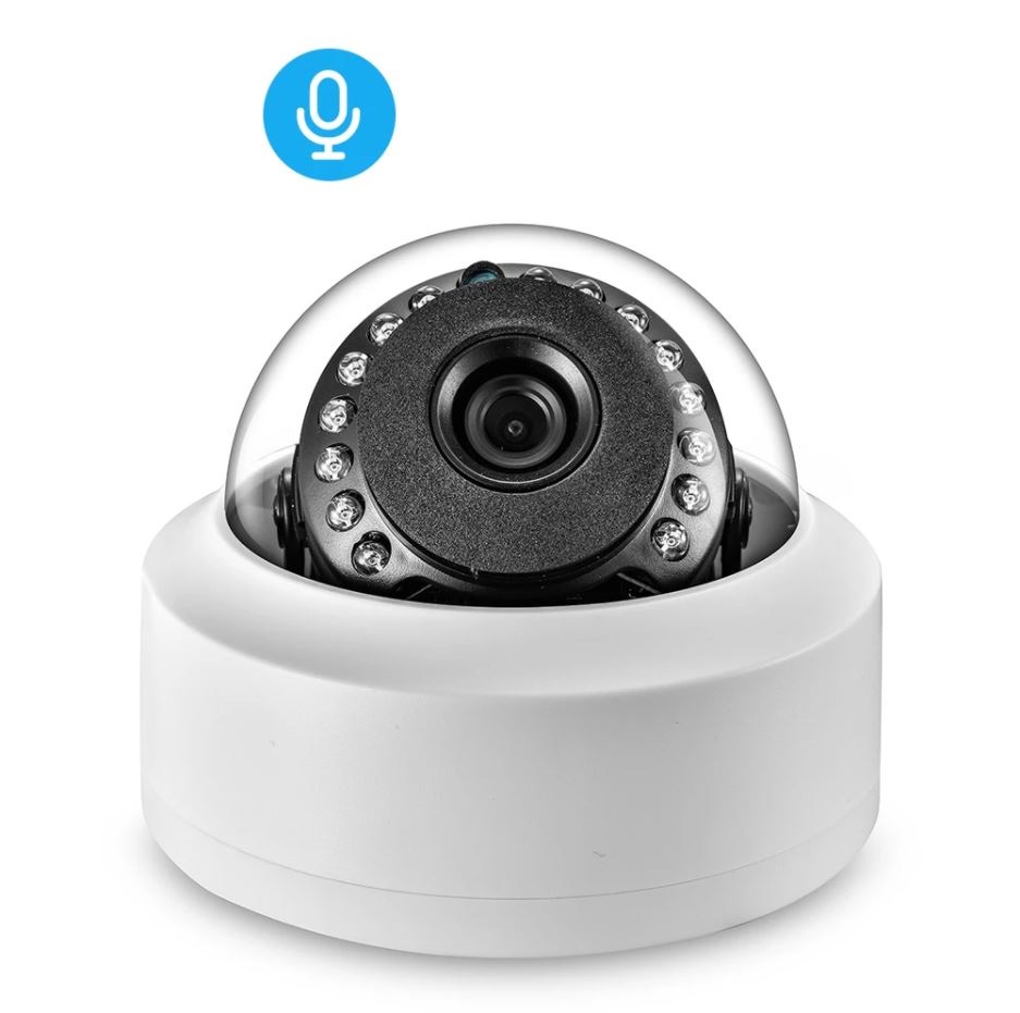 Видеокамера с поддержкой протокола ONVIF, видеокодеков H.265/H.264 и стандартным разъёмом питания 12В. Камера имеет линзу 2,8 мм с максимально широким углом обзора и поддерживает разрешение кадра до 3 мегапикселей (2304*1296), а также оснащена микрофоном, что позволяет записывать также и звук. Корпус камеры из белого ABS-пластика.