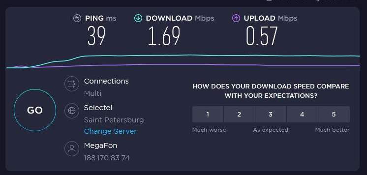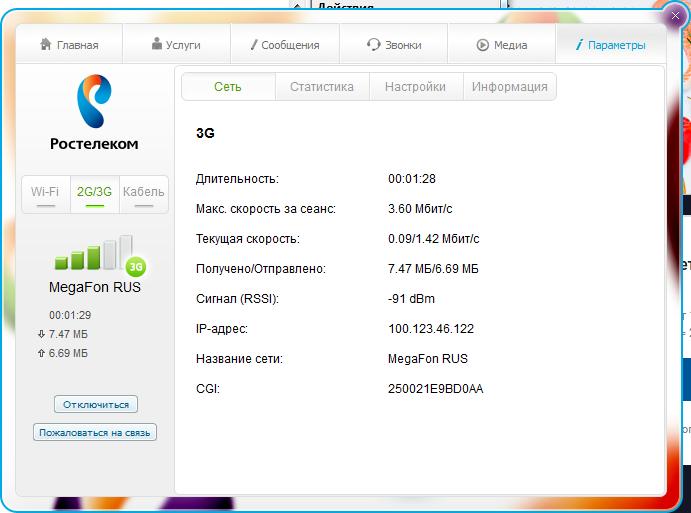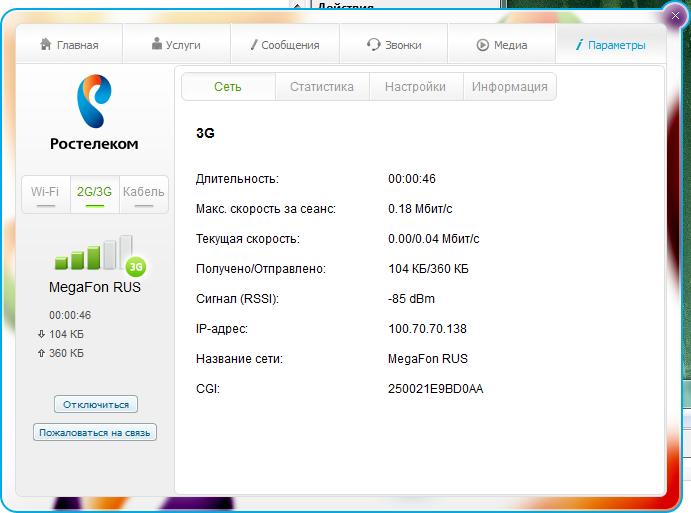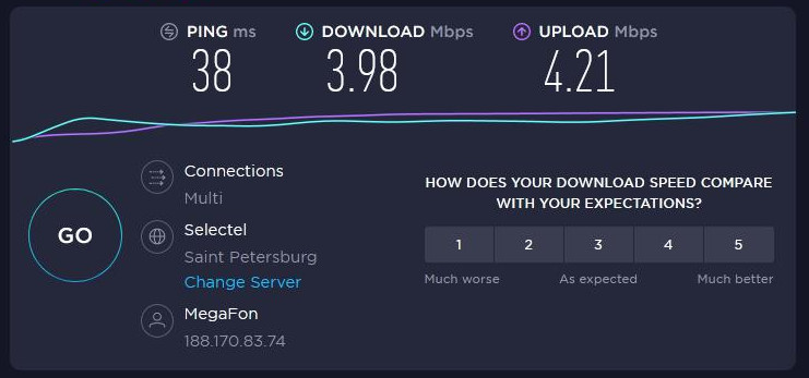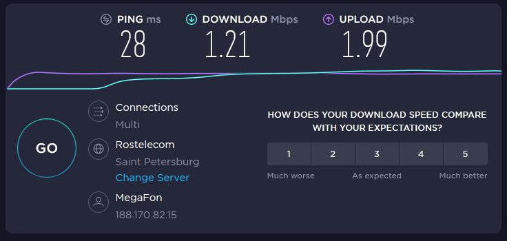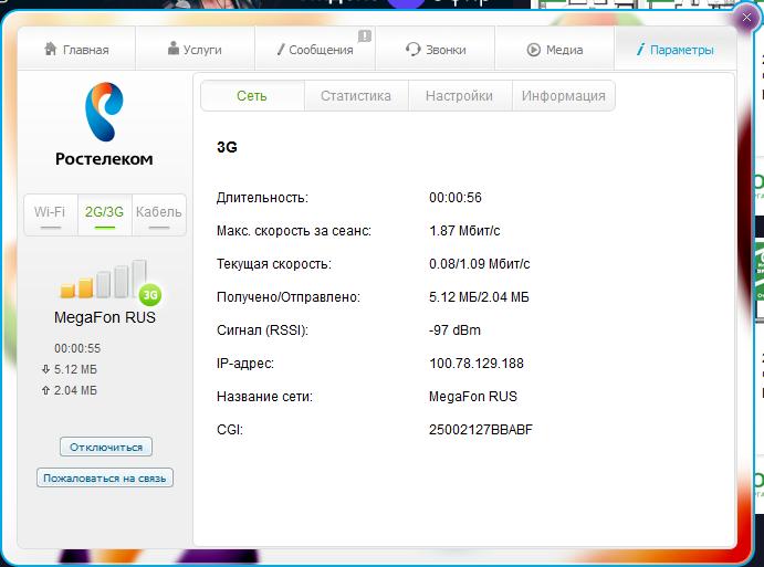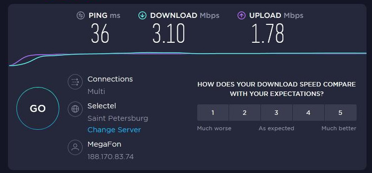 Результаты тестирования с 3G модемом- Оператор МегафонБез антенны