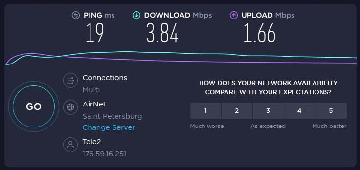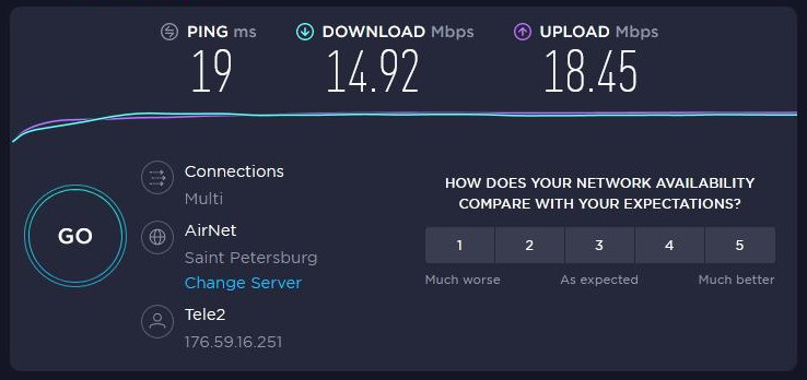 Результаты тестирования оказались следующими: антенна Petra существенно улучшает как «палочные» показатели, так фактическую скорость интернета. Антенна Agata дает больший прирост, но не особо значительный. Возможно, это связано с тем, что в моем случае БС находится не так уж и далеко и большее усиление сигнала не имеет смысла, а основную роль играет именно вынос антенны наверх — и направленность ее на базовую станцию. Проверить эту, возможно, предстоит чуть позже, когда я доберусь до одного из тех садоводств, где летом безуспешно пытался обеспечить работу бухгалтера… Прирост скорости в обратном канале ("вверх") ожидаемо превышает рост скорости в прямом ("вниз"): у базовой станции антенны так достаточно сильные, И - возникшая существенная проблема: в антенне AGATA 4G модем регулярно отваливался как устройство, ему однозначно не хватало питания в USB кабеле. 3G модем при этом работал вполне стабильно. Результаты тестирования с 4G модемом- Оператор БиЛайнБез антенны
