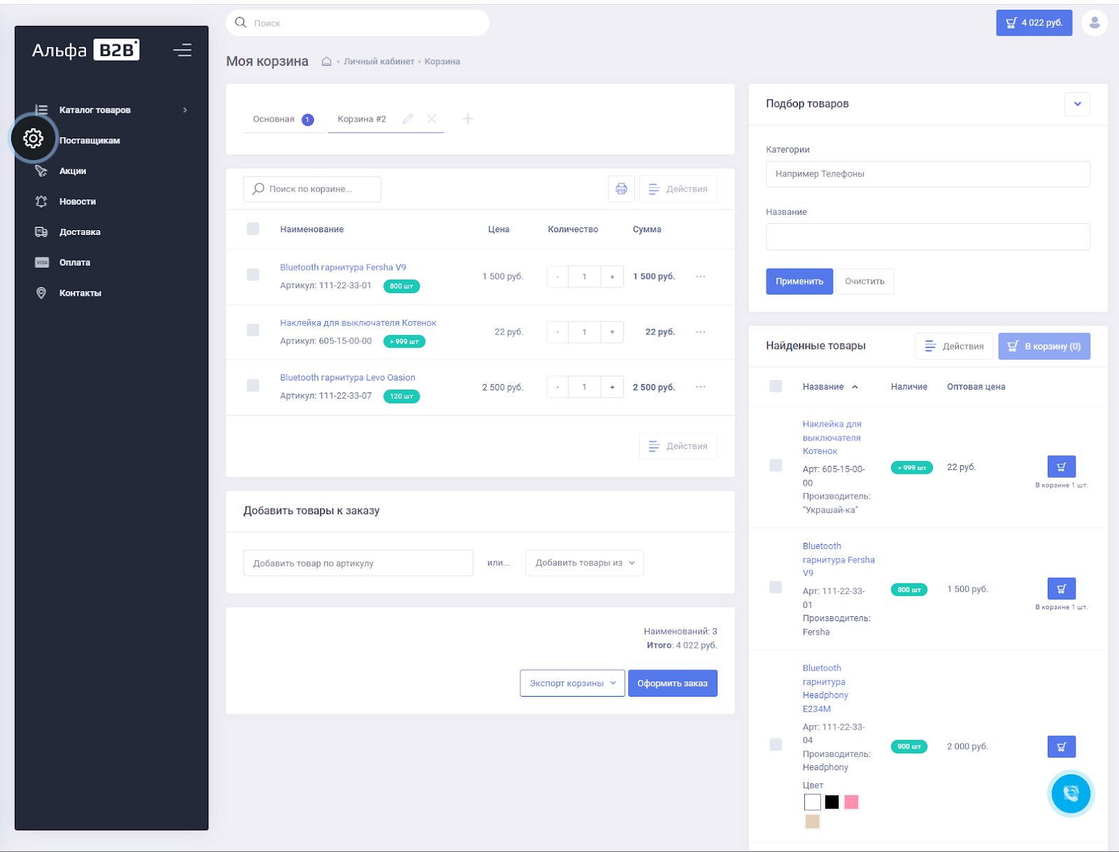 АЛЬФА: B2B - Шаблон оптового портала с личным кабинетом - Он-лайн демо шаблона b2b - портала для ознакомления с возможностями шаблона.