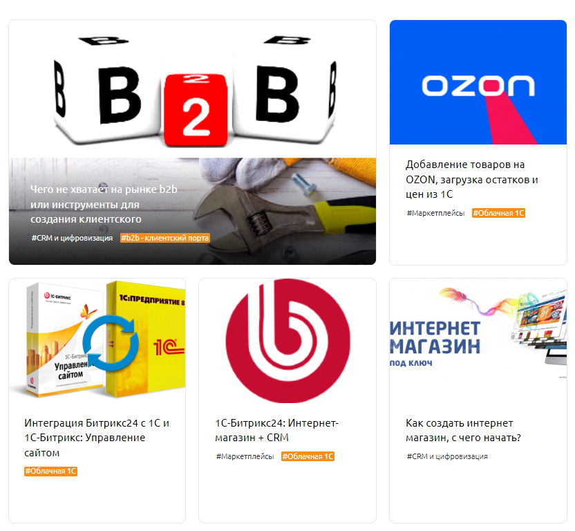 Перечень статей: https://s-alpha.ru/company/articles/ (Информация о модулях интеграции и решениях в области b2b - кабинетов)